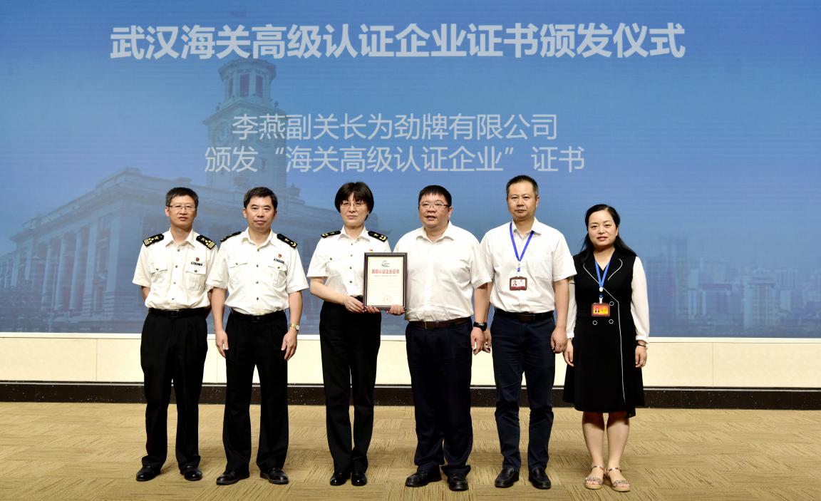 9月2日,武汉海关副关长李燕在黄石海关关长马洪波等领导的陪同下,莅临劲牌调研指导工作,并为公司颁发“海关高级认证企业”证书。劲牌公司总裁王楠波、副总裁李晖予以了热情接待。